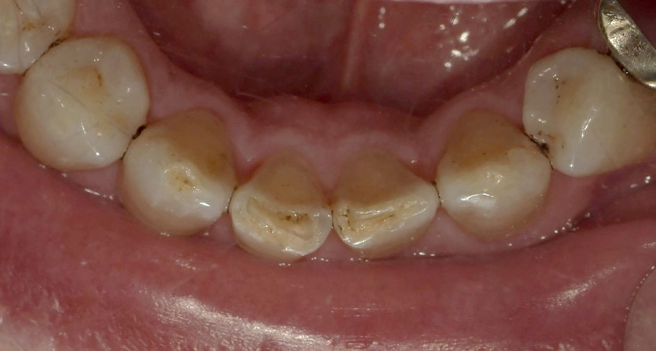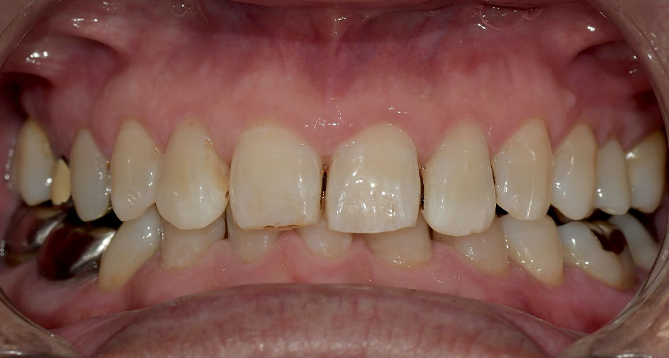 | 治療方針 | 色の濃い飲み物や食事に注意していただき、すぐに歯を磨くことやお水を飲むなどして着色防止をしていく必要がある。 歯磨き粉でも着色予防の物を普段から使用していただく。 |