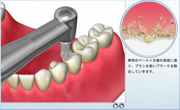 ご自身でのケアでは限界がありますので、専用の道具を用いて、汚れを徹底的に落としていきます。