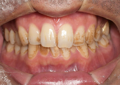 | リスク・副作用 | 下顎前歯が叢生ぎみなのでつきやすい。 またコーヒーなど飲まれると着色がついてくる。 |