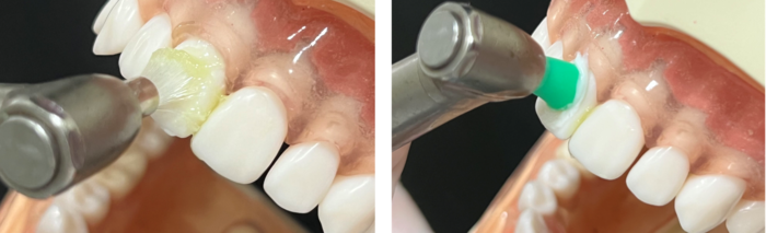 専用の柔らかいブラシと研磨剤を含むペーストを使用し、歯の表面を磨くことで着色を落とし、表面をツルツルに仕上げていきます。